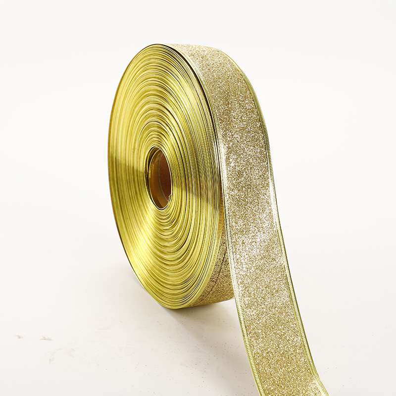 Elevate your holiday decor with this stunning wholesale Christmas decoration. The intricate metal color ribbon features a shimmering gold dust finish, creating a luxurious and sophisticated look.