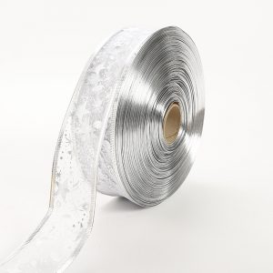 Elevate your holiday decorations with this luxurious ribbon, adorned with delicate gold and silver embroidery.